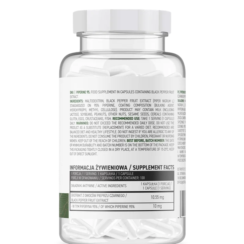 عصاره پیپرین 95 استرویت OstroVit Piperine 95 یک مکمل غذایی با کیفیت بالا است که به فرم کپسول های حاوی عصاره فلفل سیاه حاوی پیپرین است. پیپرین یک آلکالوئید طبیعی در فلفل است که نه تنها طعمی تند و سوزان به آن می بخشد، بلکه عطر خاصی به آن می بخشد و خاصیت چربی سوزی دارد.