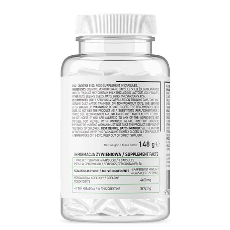 کپسول کراتین 1100 استرویت 120 عددی OstroVit Creatine 1100 یک مکمل کراتین مونوهیدرات تک جزئی درجه 1 و میکرونیز شده است. کراتین یک مکمل شناخته شده است که اثر بخشی آن توسط مطالعات علمی متعدد تایید شده است. این محصول رشد بهتر بافت عضلانی، ریکاوری موثر و انرژی را برای تمرینات طولانی تر، موثرتر و سخت تر فراهم می کند.