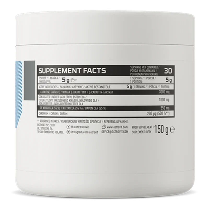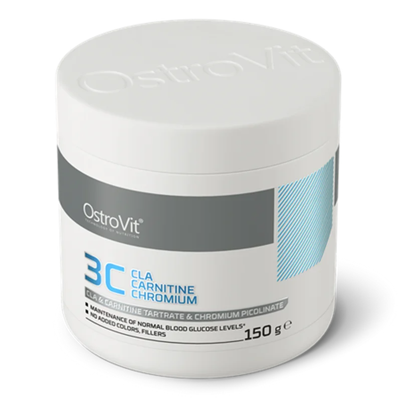 سی ال ای کارنیتین کروم استرویت OstroVit 3C CLA L-Carnitine Chromium یک مکمل 150 گرمی با کیفیت بالا و به شکل پودر است کهب ه خوبی با آب حل می شود و دارای دو طعم خوشمزه کیوی یا لیموناد رزبری با نعنا است. این محصول مجموعه ای از سه ماده فعال ال کارنیتین، CLA و کروم است و از با کیفیت ترین مواد تشکیل دهنده برای همه افراد با فعالیت بدنی که می خواهند متابولیسم مناسبی داشته باشند ساخته شده است. این محصول از فرایند کاهش وزن شما پشتیبانی می کند.