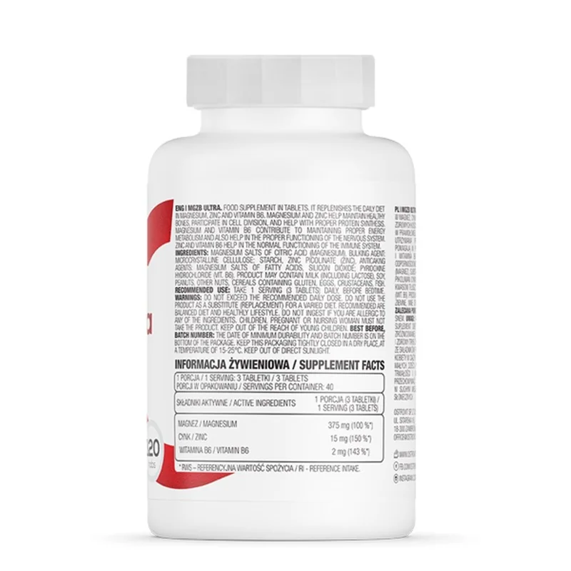 قرص منیزیم، زینک و ویتامین B6 استرویت OstroVit MGZB ULTRA یک مکمل غذایی با کیفیت بالا است که از سه ترکیب ضروری برای بدن انسان تشکیل شده است. این محصول برای بزرگسالان با فعالیت بدنی و به ویژه ورزشکاران طراحی شده است. 120 قرص در داخل بسته بندی وجود دارد که از فرم قابل بلع ساده پشتیبانی می کنند.منیزیم موجود در این فرمول به عملکرد صحیح ماهیچه ها و حفظ تعادل الکترولیت ها کمک می کند و همچنین به حفظ استخوان ها و دندان های سالم کمک می کند. منیزیم و ویتامین B6 به حفظ متابولیسم مناسب انرژی کمک می کند و به عملکرد صحیح سیستم عصبی کمک می کند. علاوه بر این، این مواد به کاهش خستگی کمک می کنند.روی موجود در OstroVit MgZB ULTRA به حفظ تعادل اسید و باز مناسب کمک می کند و به حفظ سلامت پوست و مو و ناخن کمک می کند. علاوه بر این، روی به حفظ متابولیسم طبیعی اسیدهای چرب و ویتامین A کمک می کند. روی و ویتامین B6 به عملکرد صحیح سیستم ایمنی کمک می کنند.
